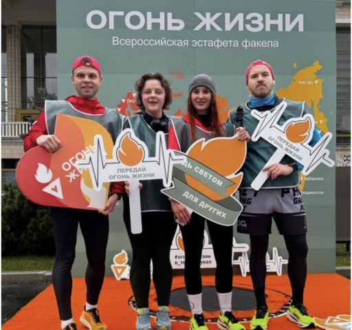 06 ноября 2025 года. Весной 2025 года Федеральным медико-биологическим агентством был дан старт масштабной Всероссийской эстафете «Огонь жизни» с целью привлечения новых доноров в Федеральный регистр доноров костного мозга для увеличения шансов на спасение пациентов с лейкемией и другими тяжелыми заболеваниями. Организаторами эстафеты вместе с ФМБА России выступили Фонд социальных инициатив «Огонь жизни» и благотворительный фонд «Импакт». Факел эстафеты пронесли через 97 городов России, где были организованы донорские акции, лекции и встречи. Финал благотворительной эстафеты «Огонь жизни» завершился в Москве на территории спортивного центра «Лужники», в рамках которого прошел символический забег на дистанцию 5 км без соревновательной части. Во Всероссийской эстафете приняли участие члены Молодежного совета НМИЦО ФМБА России.