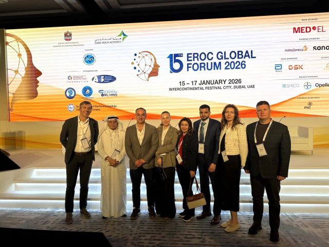 22 января 2026 года. В Дубае, ОАЭ завершился 15-ый Глобальный форум EROC-2026 оториноларингологов, который традиционно проводится в начале года под руководством IFOS, международного общества, объединяющего оториноларингологические общества планеты. На площадке престижного мероприятия ведущие эксперты стран мира проводят обмен опытом, участвуют в проведении мастер-классов, панельных дискуссий, представляют инновационные разработки и технологии в области современной оториноларингологии, хирургии головы и шеи. В программе форума приняли участие специалисты отделения патологии уха и основания черепа НМИЦО ФМБА России во главе с ведущим отохирургом центра, заместителем директора по международной работе, д.м.н., проф. Диаб Х. М.А.