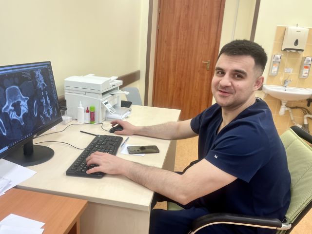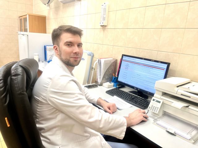 В поликлинике проводит прием команда врачей-нейрохирургов отделения нейрохирургии, которое было открыто в НМИЦО ФМБА России в 2024 году. На приеме после осмотра пациенты, имеющие показания к проведению нейрохирургического лечения, направляются в стационар НМИЦО ФМБА для получения высокотехнологичной медицинской помощи. Сегодня прием провел врач-нейрохирург отделения Илья Кириленко.