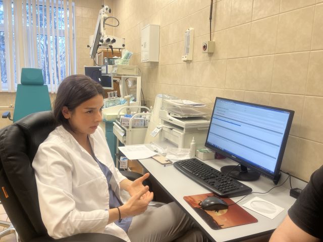 Вместе с заведующей поликлиникой, к.м.н. Анной Тулиной побывали на приеме у оториноларинголога отделения патологии уха и основания черепа Ольги Паниной, специалиста отделения заболеваний верхних дыхательных путей, к.м.н. Башарат Давудовой, оториноларинголога-фониатра Егора Демидова и логопеда Евгении Михеевой (отделение фониатрии), врача-невролога, к.м.н. Таисии Басковой, отоневролога Марии Бетиной (отделение отоневрологии и вестибулологии), врача-офтальмолога Марии Сысоевой, оториноларингологов Руслана Хабиева и Константина Мищенко (отделение опухолей органов головы и шеи) и побывали в кабинете у стоматологов поликлиники.