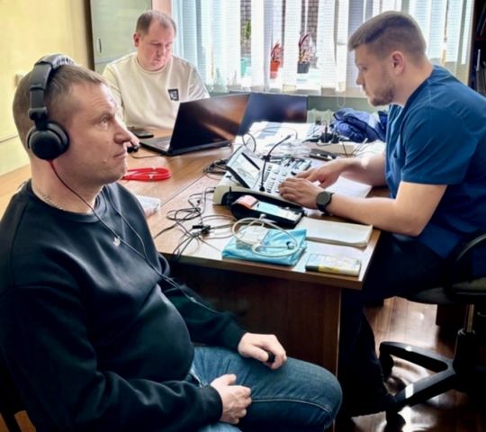 14 апреля 2026 года. Диагностику слуха у ветеранов СВО и членов их семей провели на базе Ивановского медицинского университета сурдологи врачам НМИЦО ФМБА России совместно со специалистами Ивановской областной клинической больницы. Выездной прием и обследование участников боевых действий были реализованы в рамках сотрудничества НМИЦО ФМБА России, Государственного фонда «Защитники Отечества» и региональных органов власти. За три дня приема обследование прошли 90 человек, включая и родственников бойцов. В рабочей поездке приняли участие – зав.отделением сурдологии и слухоречевой реабилитации, к.м.н. Виталий Карпов, начальник отдела организационного-методического руководства региональными медучреждениями Дмитрий Липсон и начальник отдела технического обеспечения Иван Пименов.
